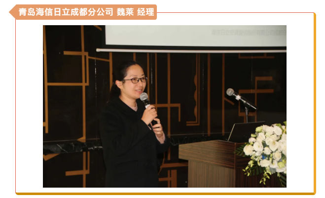 最后,本次會議支持企業青島海信日立空調營銷股份有限公司成都分公司技術部魏萊經理上臺發言,并作全品類海信中央空調應用分享。