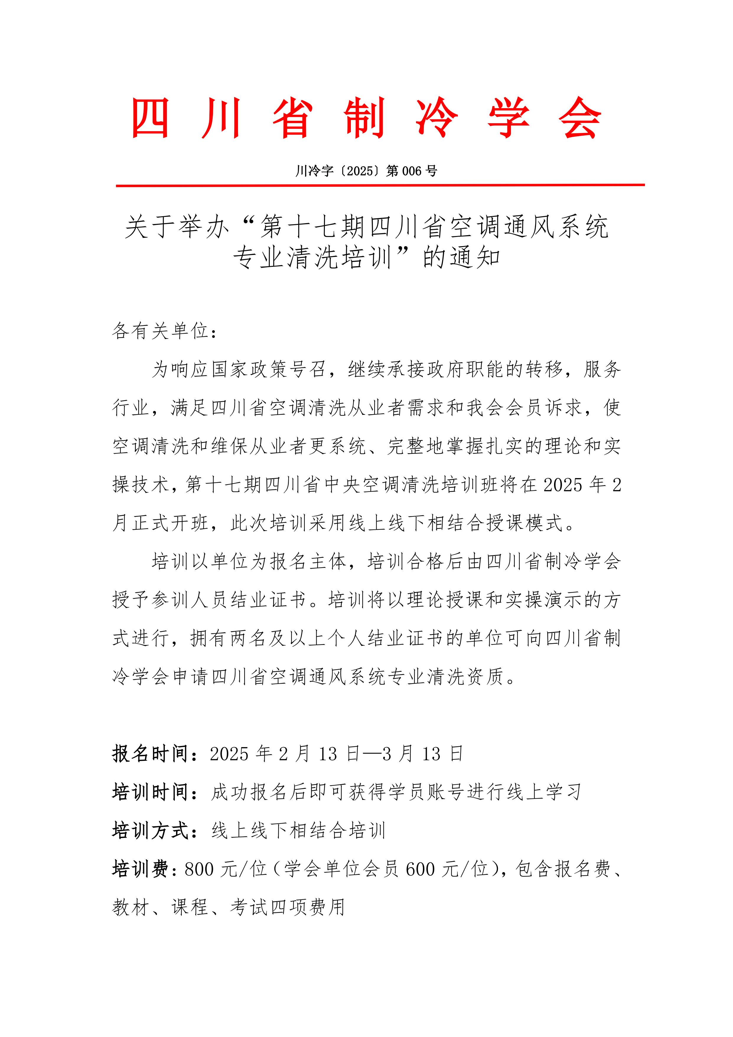 關于舉辦“第十七期四川省空調通風系統專業清洗培訓”的通知
